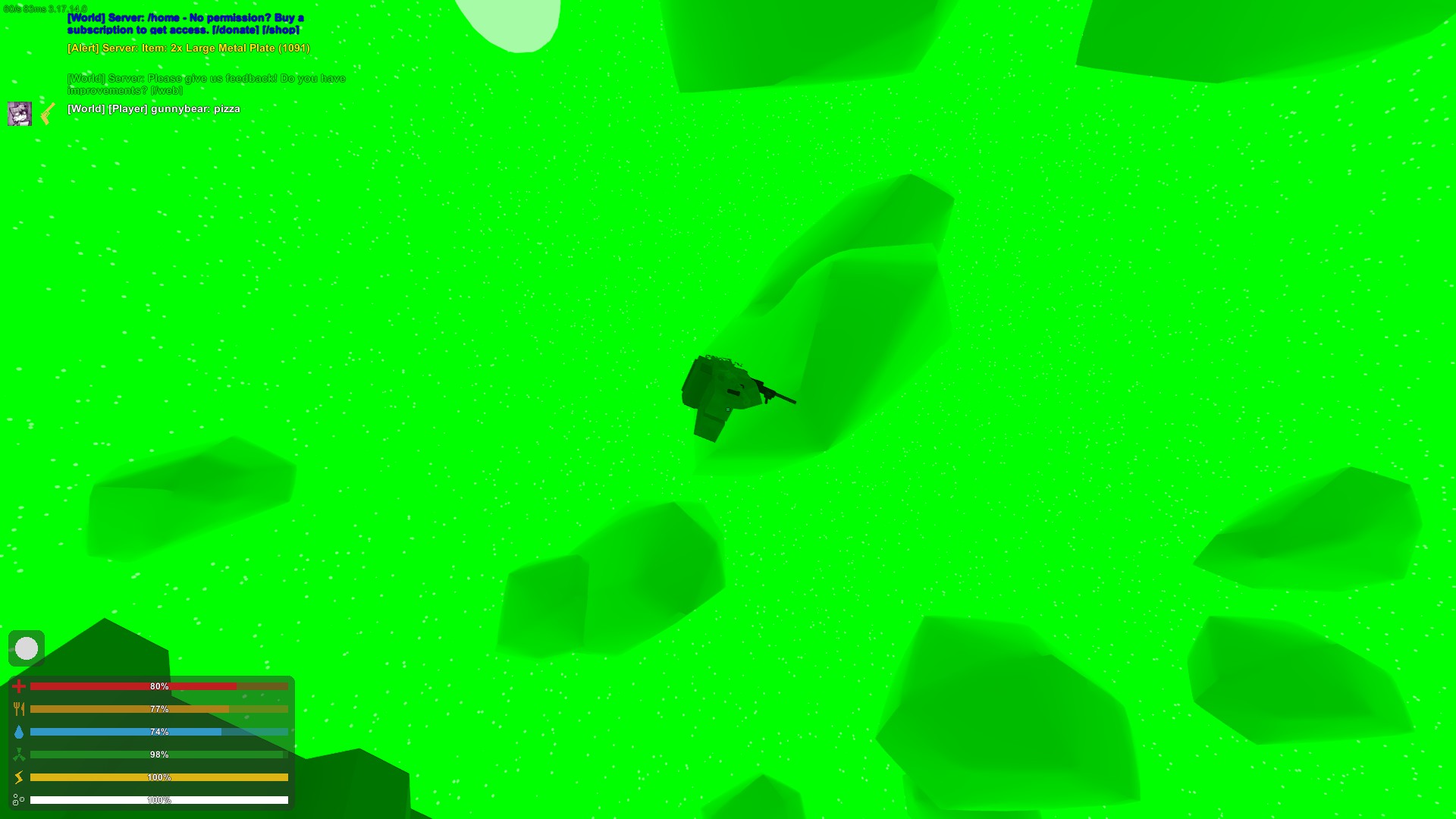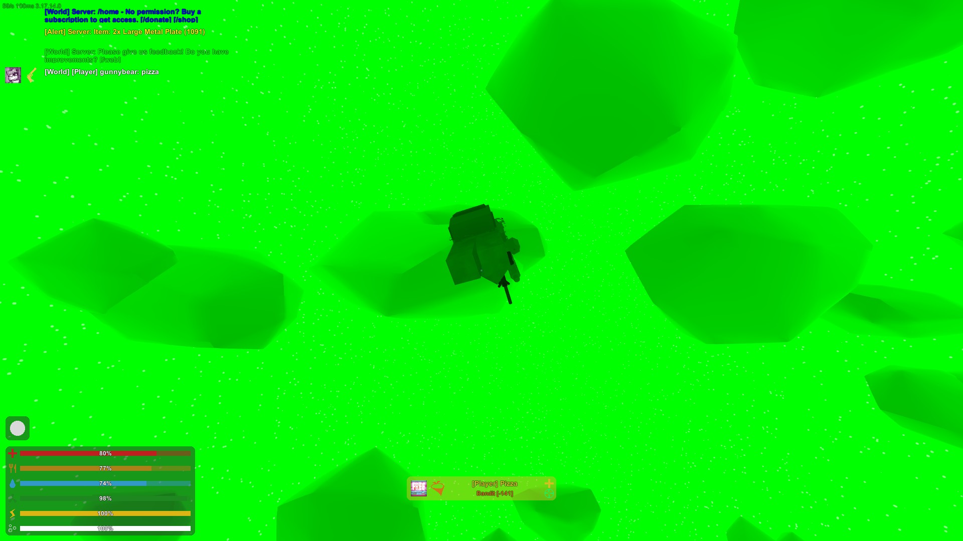 I was killed by the ? bug, which I assumed was a hacker. This "pizza" guy instantly said "im not hacking, its a glitch" even though i was not referring to him specifically, which was the first red flag. Then I saw this guy zoom across the sky (first 4 pictures) waay too fast to be in an unrendered vehicle. Later, I saw the same person floating above prison (last 5 pictures). too high for jumping distance, and sure enough, it was pizza again.