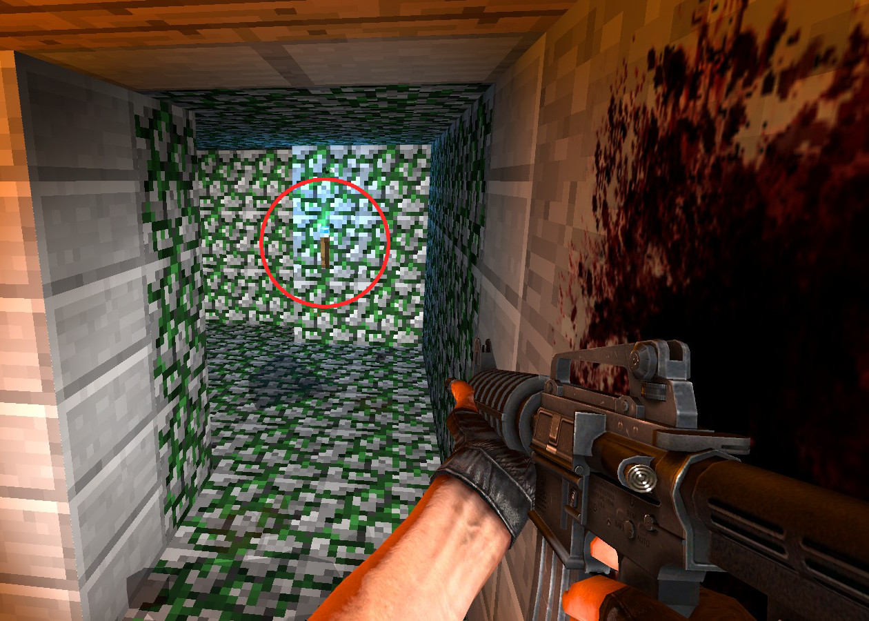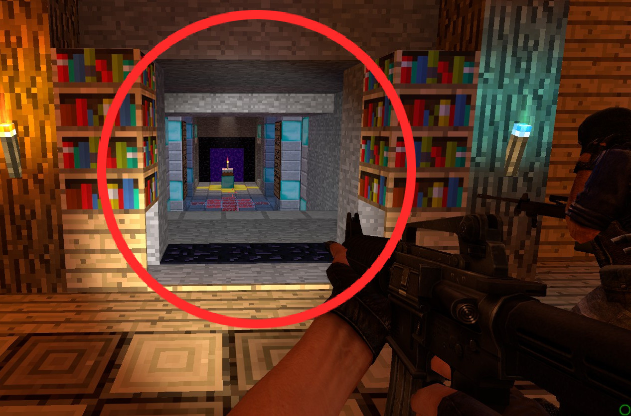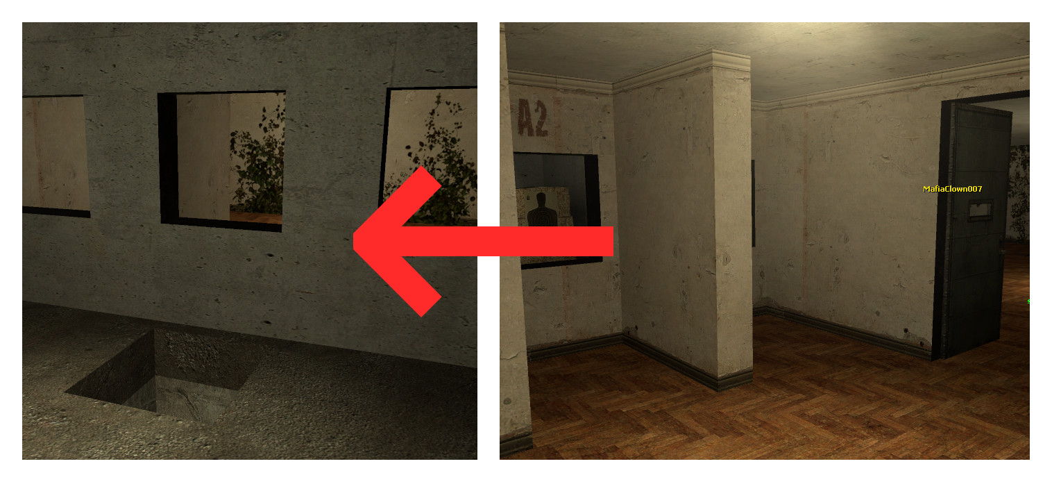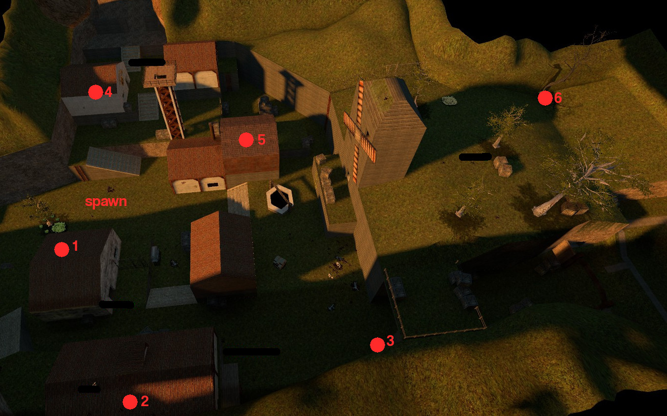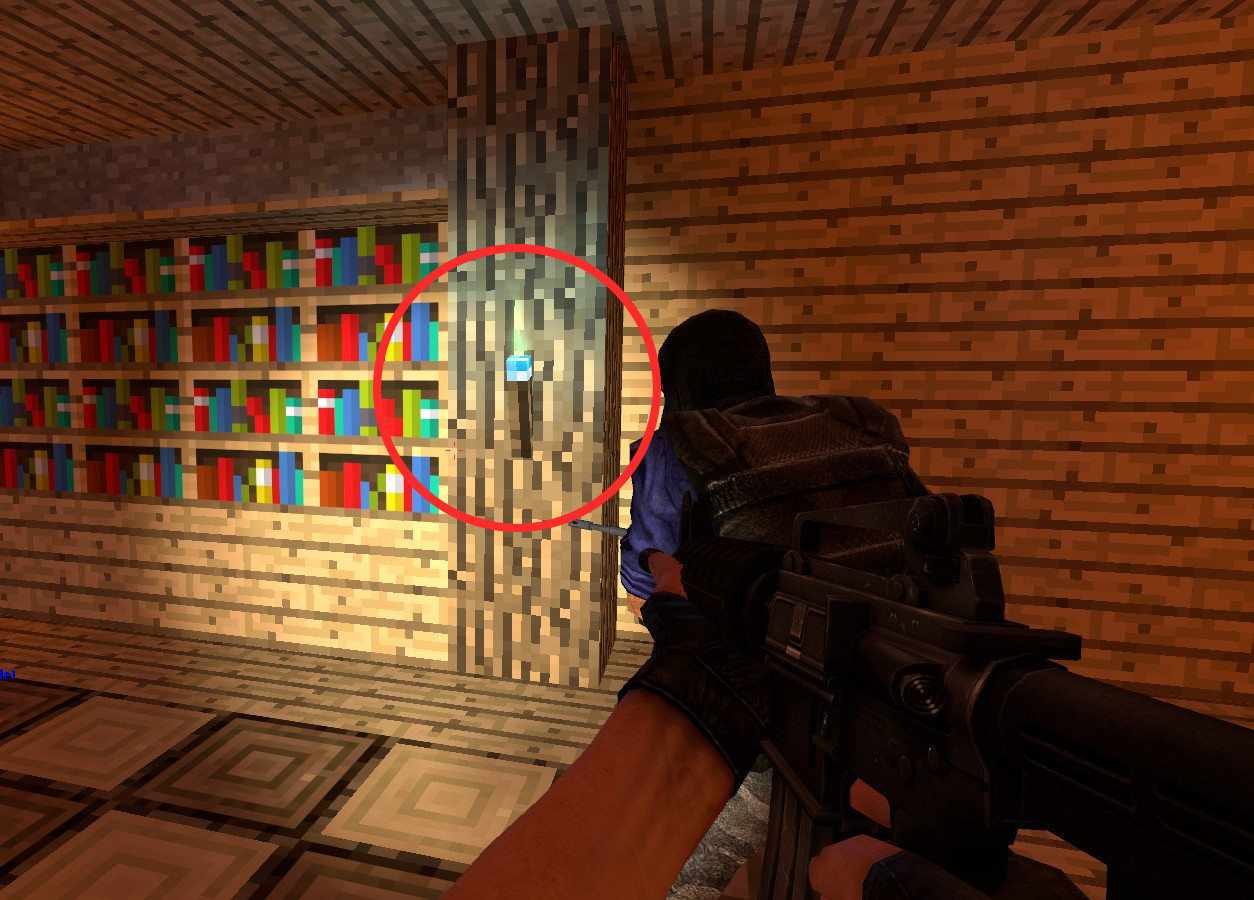 Die Buttons sind vergleichsweise klein und an verschiedenen Stellen der Map versteckt. Werden sie nacheinander gedrückt, so teleportiert der letzte Button in einen Geheimraum mit Knife, der durch ein Tor in der Wand wieder verlassen werden kann.