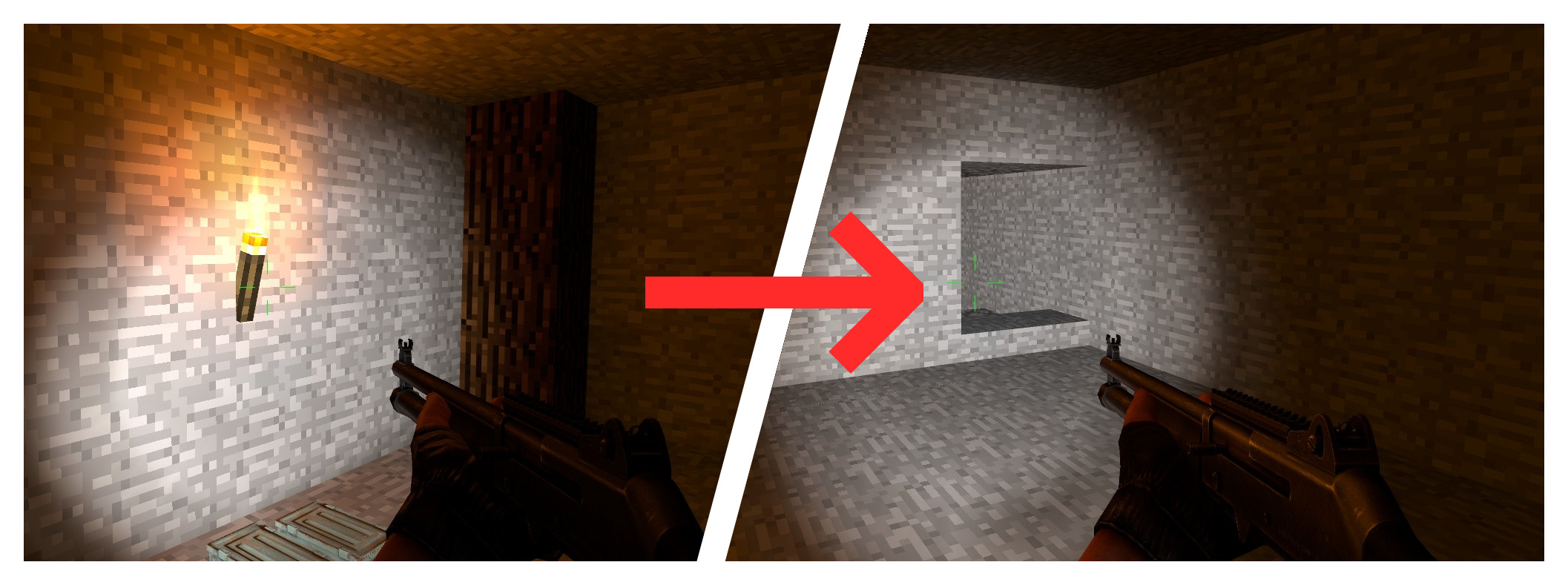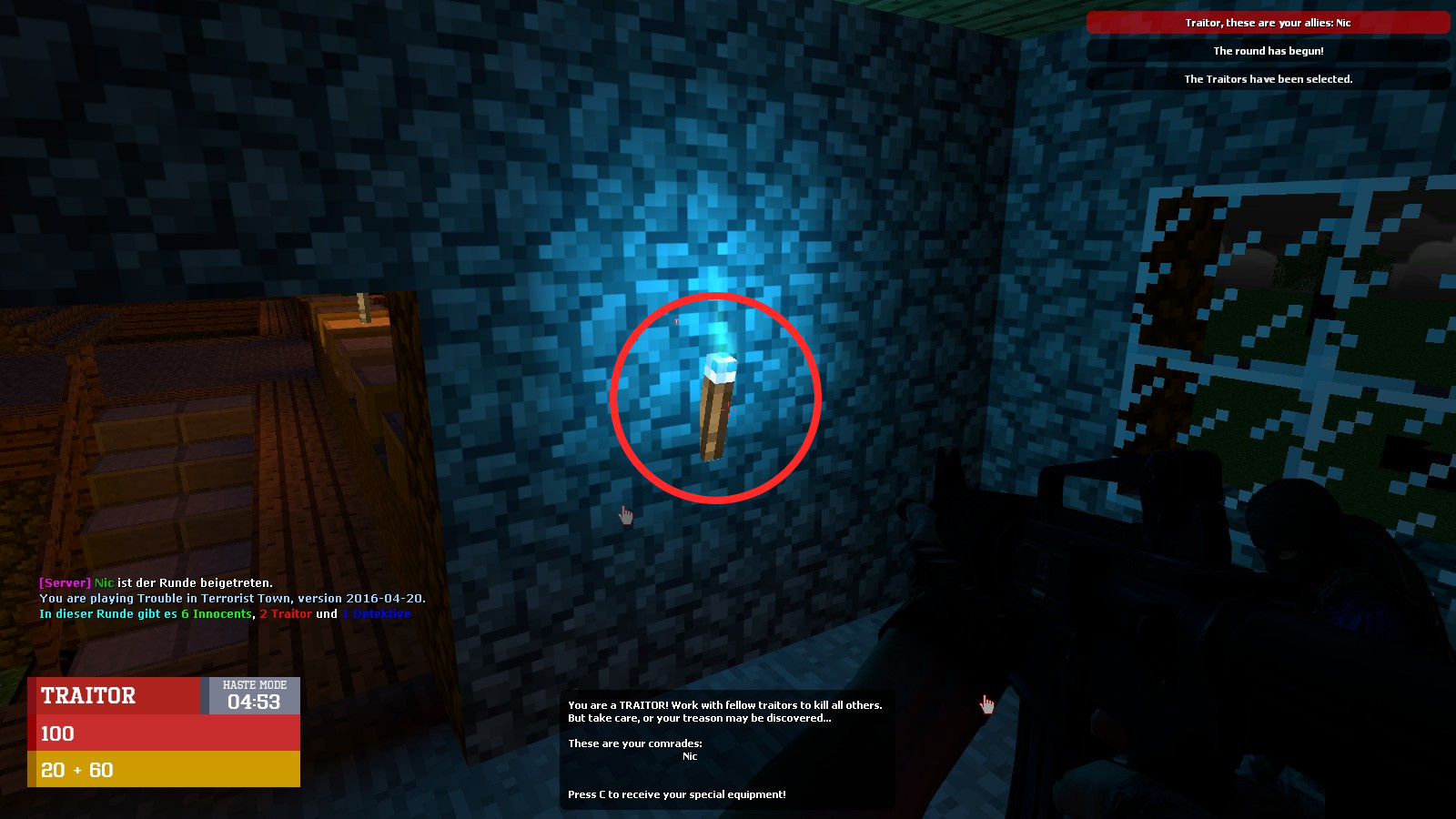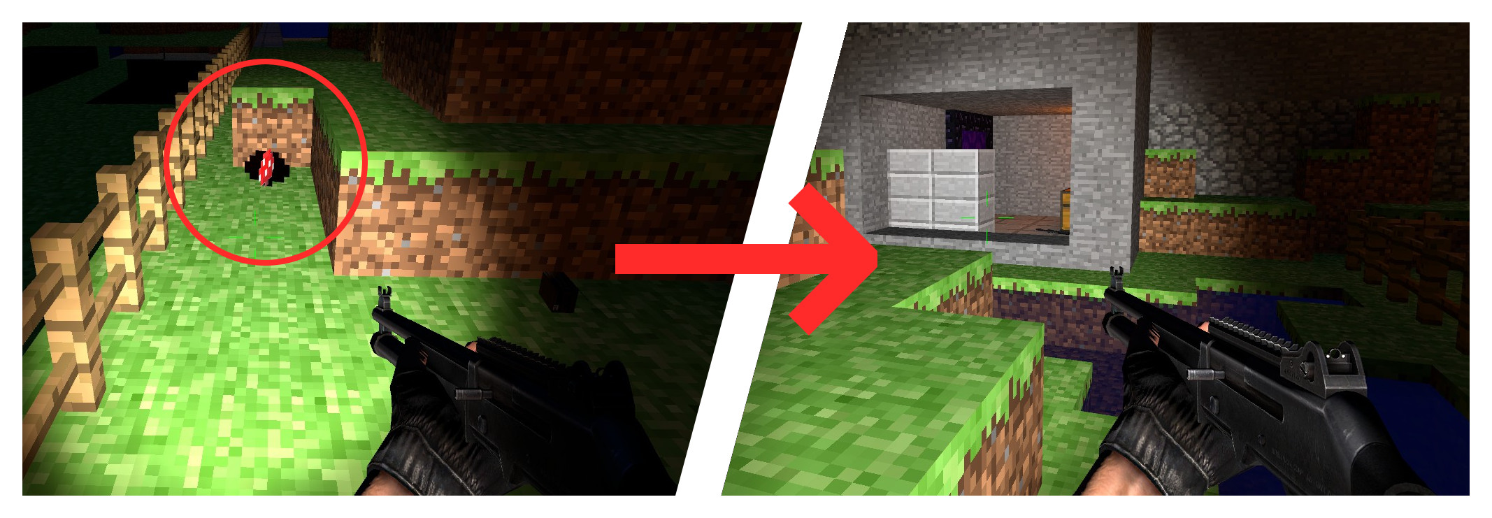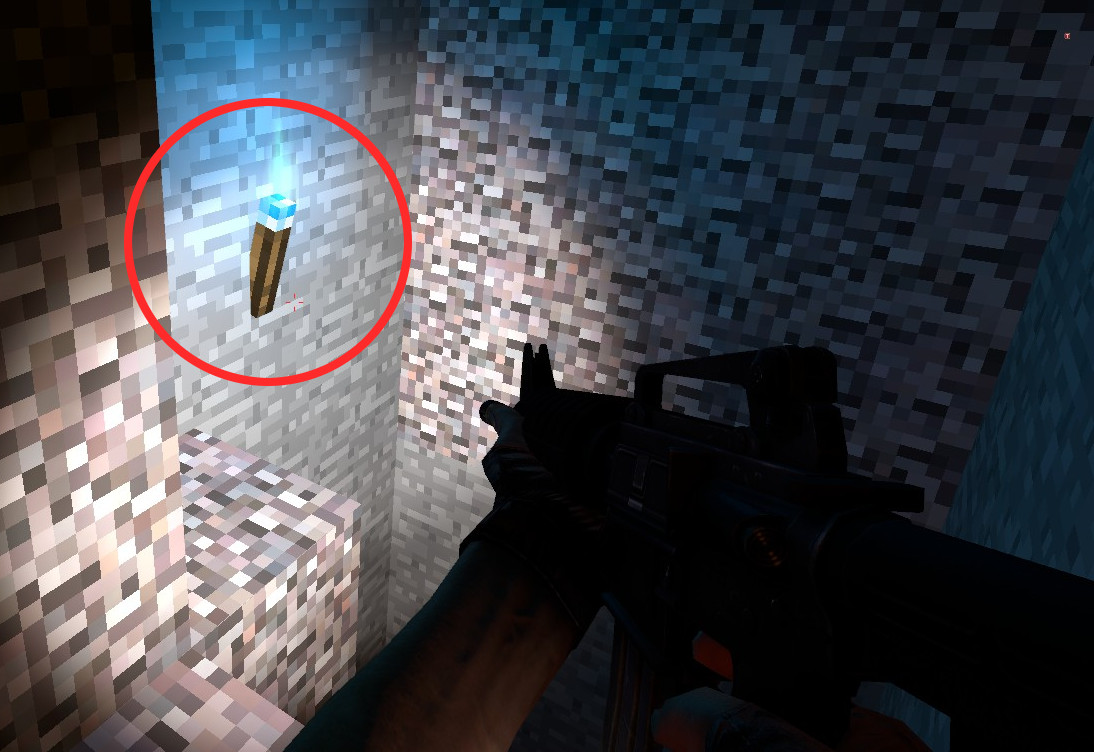 Die Buttons sind vergleichsweise klein und an verschiedenen Stellen der Map versteckt. Werden sie nacheinander gedrückt, so teleportiert der letzte Button in einen Geheimraum mit Knife, der durch ein Tor in der Wand wieder verlassen werden kann.