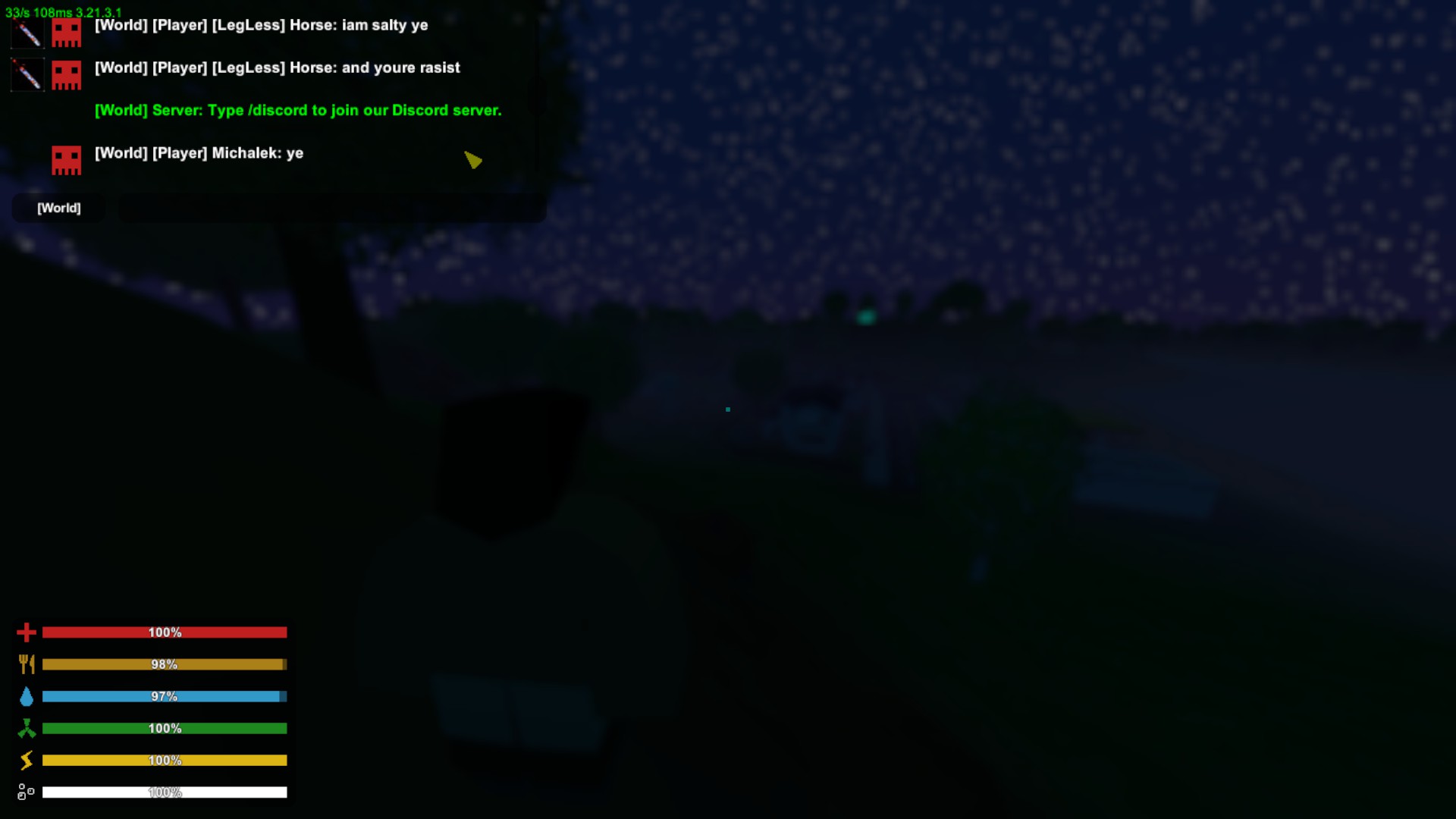 We were roleplaying on 1-1 sandbox and we were building house and somebody starting to rocket it and i killed him like 5 times. And he started to saying rasist stuff and ,,allahuwakbar" or something like that but i didnt screenshotted the rasist stuff coz i didnt have time coz other 3 people were attacking us as well but i have screenshotted the allahuwakbar stuff so here it is